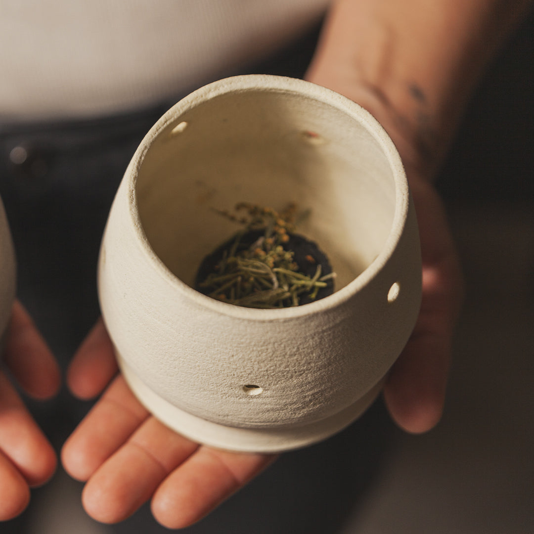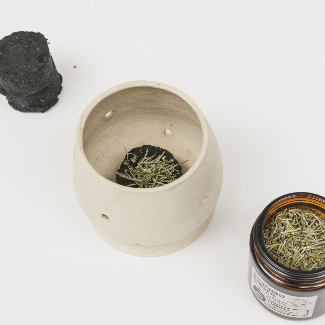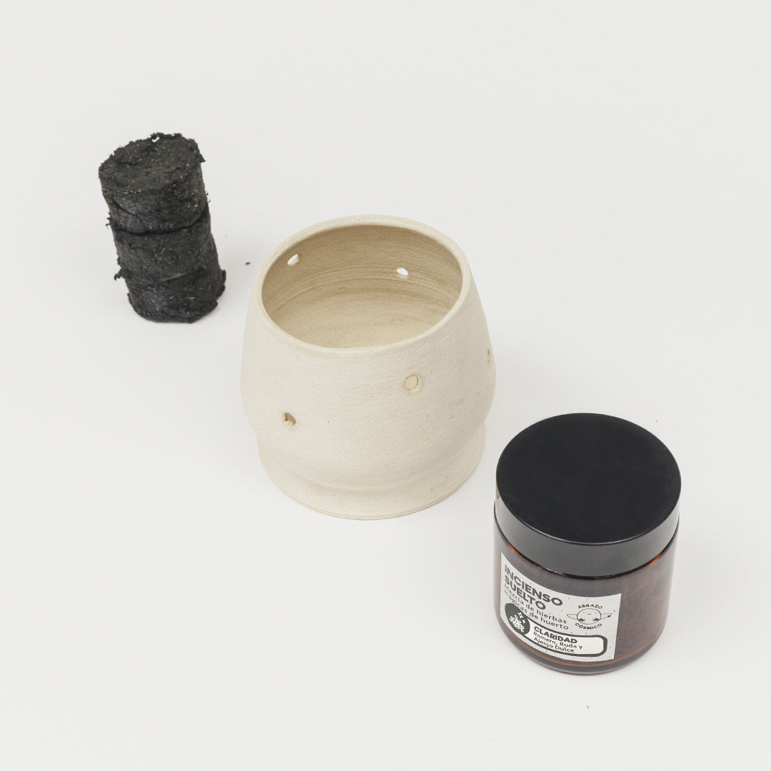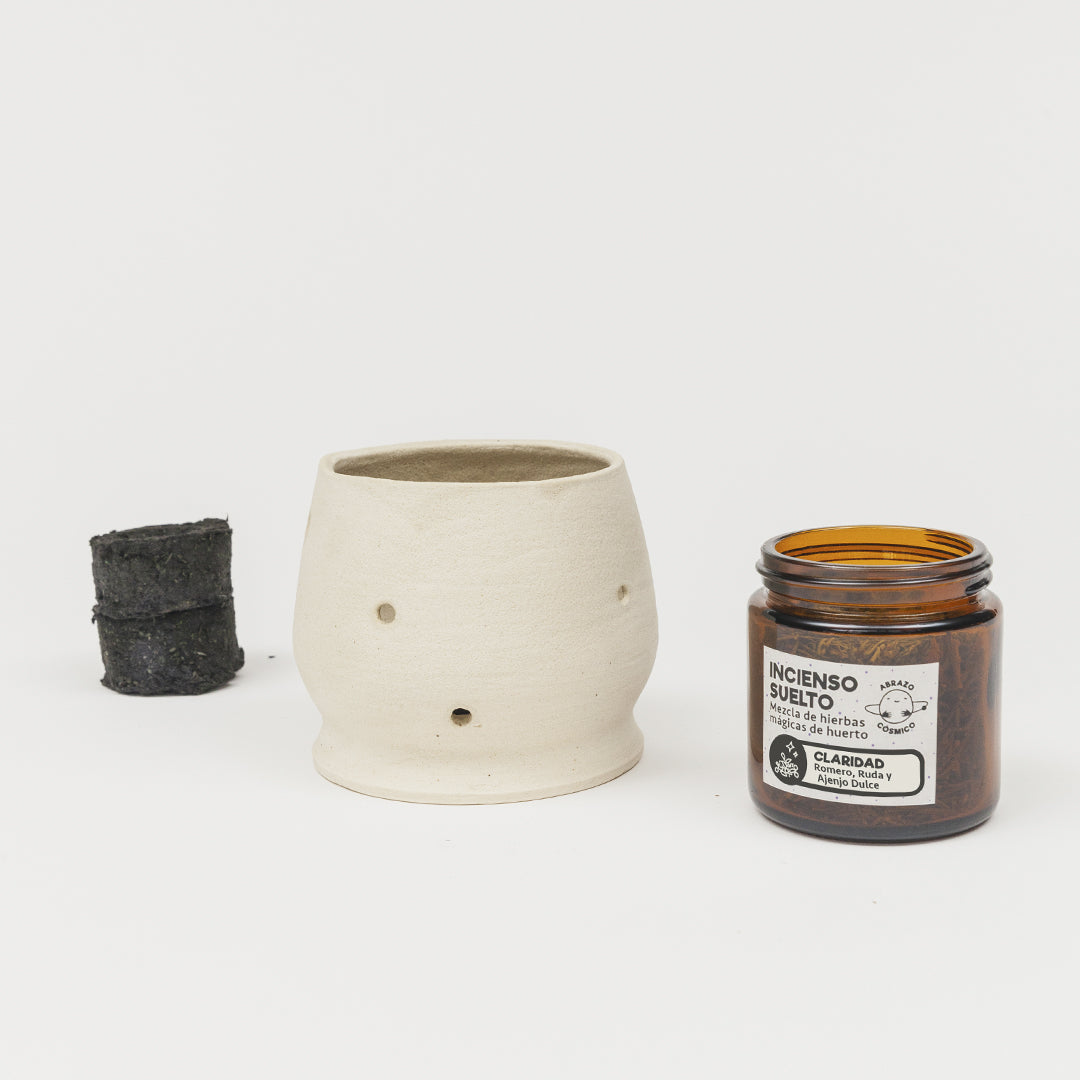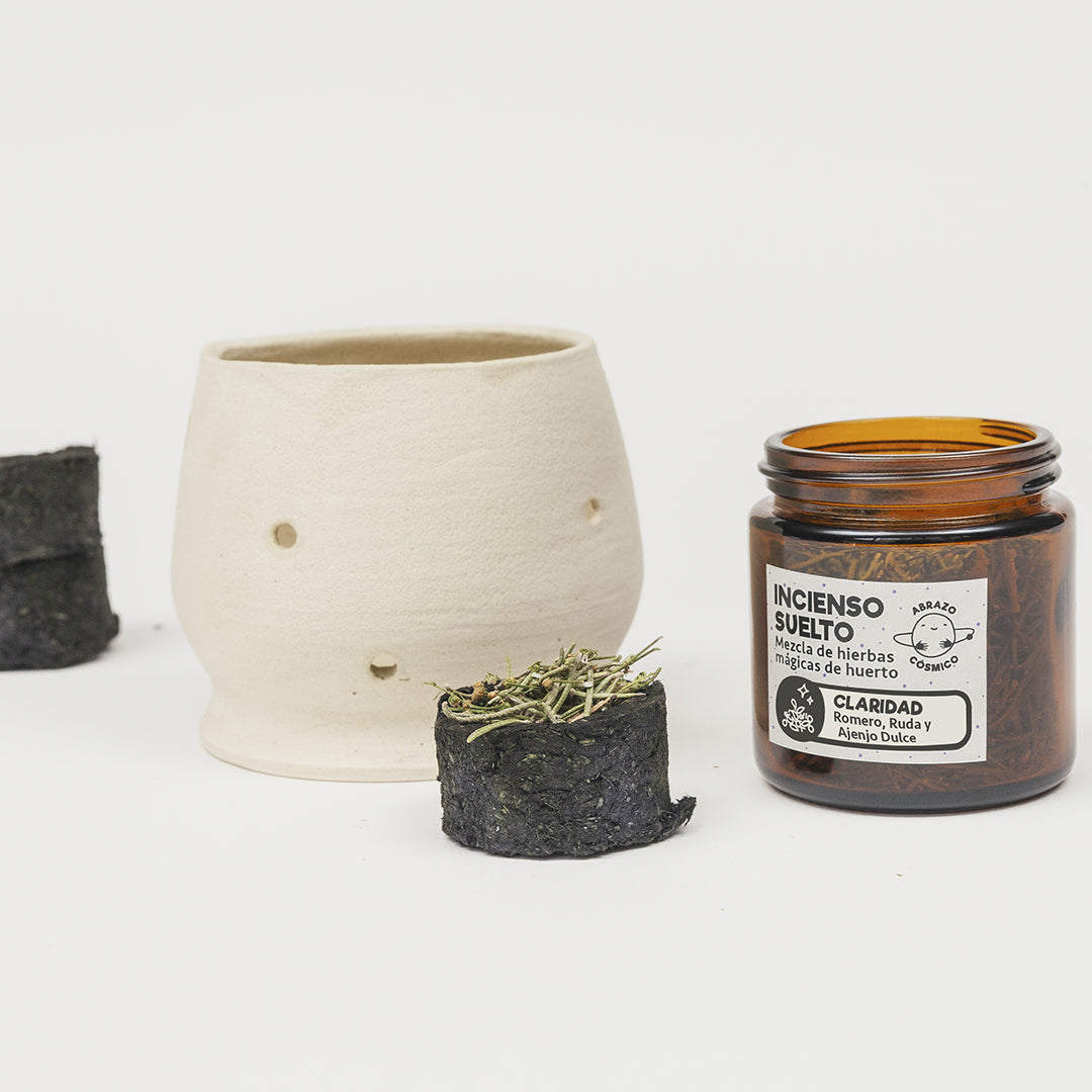 INCENSARIO "LUNA LLENA" de Mudah Cerámica + INCIENSO SUELTO Hierbas mágicas de huerto - CLARIDAD: Romero, Ruda, Ajenjo Dulce