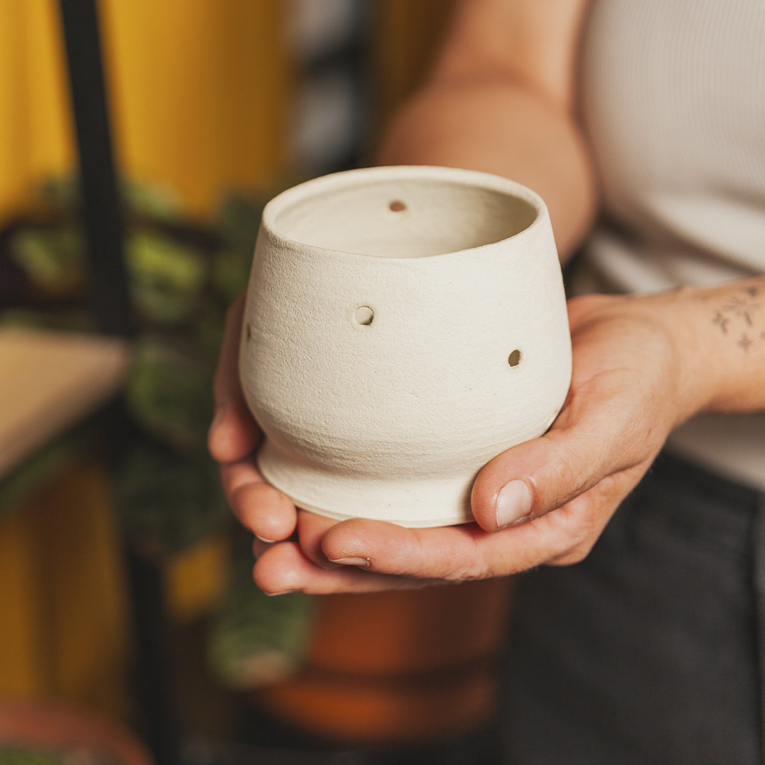 El INCENSARIO "LUNA LLENA" - color blanco - es una colaboración con Mudah Cerámica. Cada pieza es creada con intensión y de manera artesanal con pasta cerámica en torno.