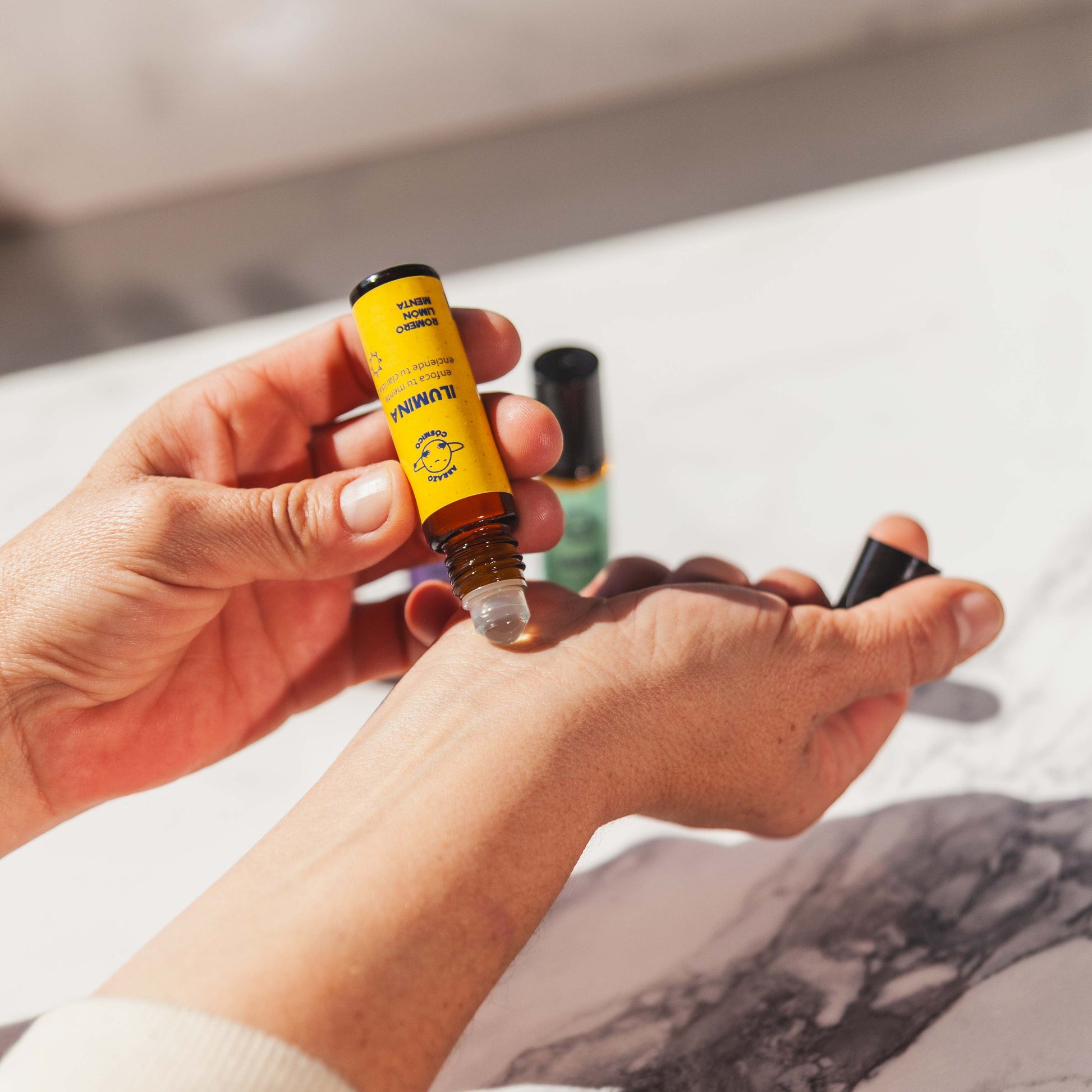 CONTENIDO: 4 frascos de vidrio ambar con aplicador Roll on.10 ml. cada uno